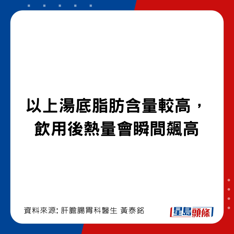 臺灣肝膽腸胃科醫生黃泰銘亦補充,很多人喜歡吃火鍋,但要注意以下4大致肥陷阱: