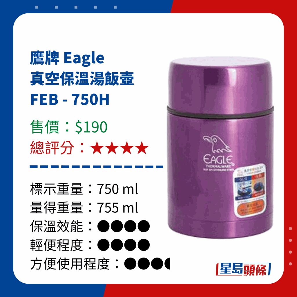 “鷹牌Eagle”真空保溫湯飯壺SUS 304($190)