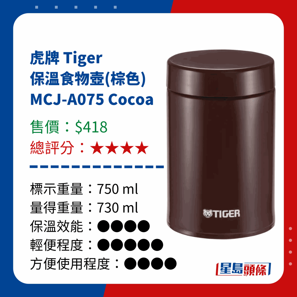 “虎牌Tiger”保溫食物壺MCJ-A075($418)