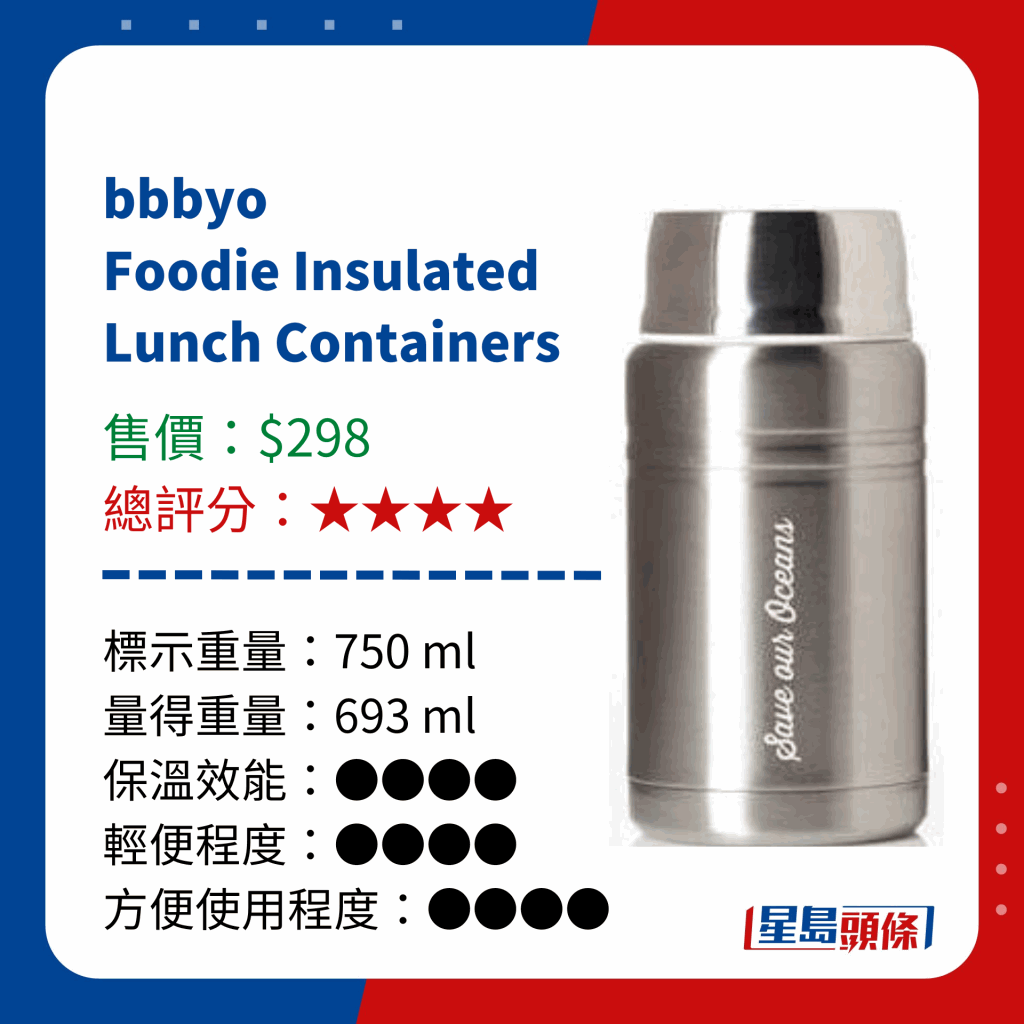 8 款燜燒壺價格由 130 元至 449 元,其中 1 款 190 元及最貴 449 元的樣本總評同獲4分;7 款保溫飯壺每套售價由 169 元至 468 元,其中 1 款 181 元及另 1 款 409 元的樣本總評得 3 分,同為表現最佳的保溫飯壺,相比測試中最貴的樣本略勝一籌。