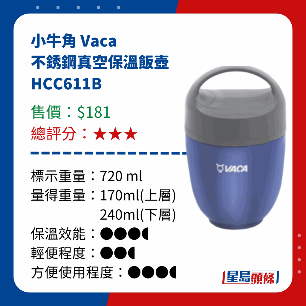 “小牛角Vaca”不銹鋼真空保溫飯壺HCC611B($181)