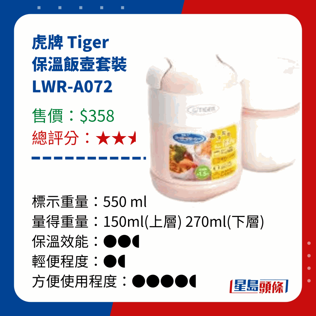 “虎牌”保溫飯壺套裝LWR-A072($358)