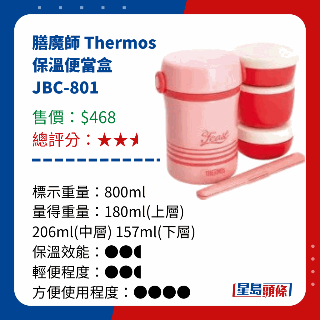 “膳魔師Thermos”保溫便當盒JBC-801($468)