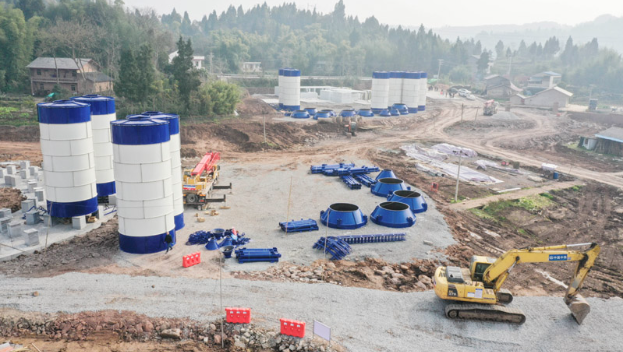 ▲成渝中線高鐵今年初全線首樁開鉆,圖為工作人員在重慶市大足區的工程現場作業。 新華社