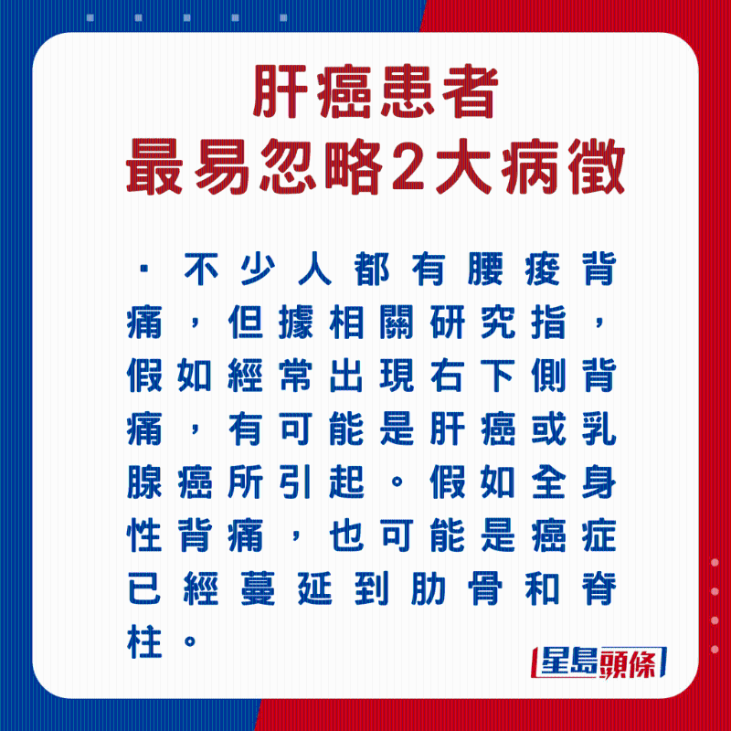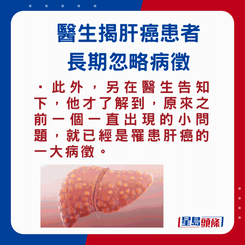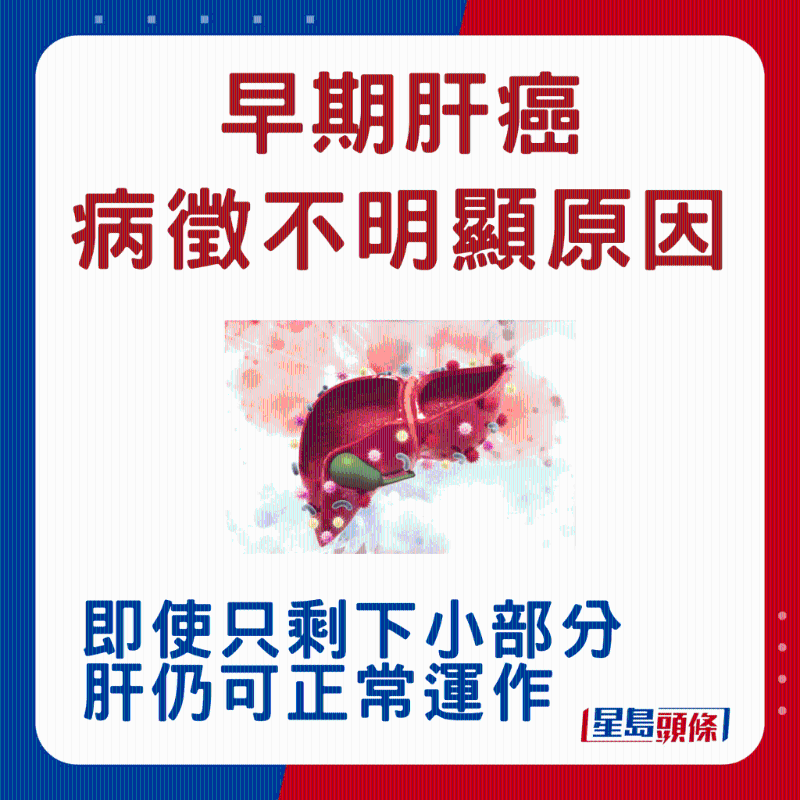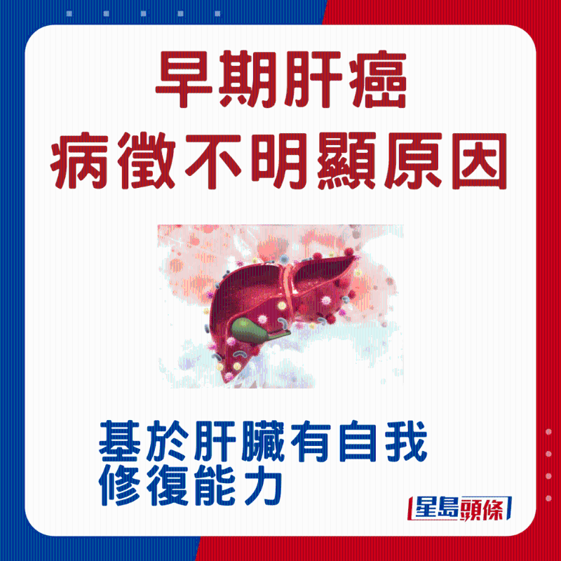潘冬平教授指出,因肝臟有自我修復能力,即使剩下小部分仍可正常運作,故早期肝癌病征不明顯。