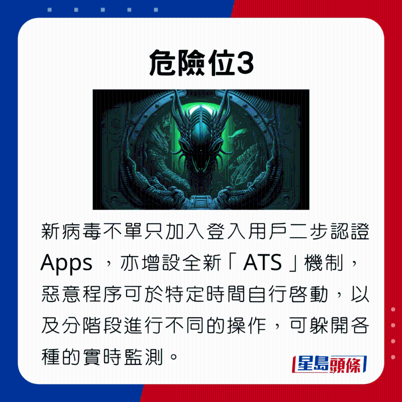 Android手機病毒|Android手機用戶要留意,一款針對金融機構的木馬病毒程序Xenomorph(異形),出現了第3代變種Xenomorph.C,可以避開審查及偵測,從而盜取金錢,危險性激增!
