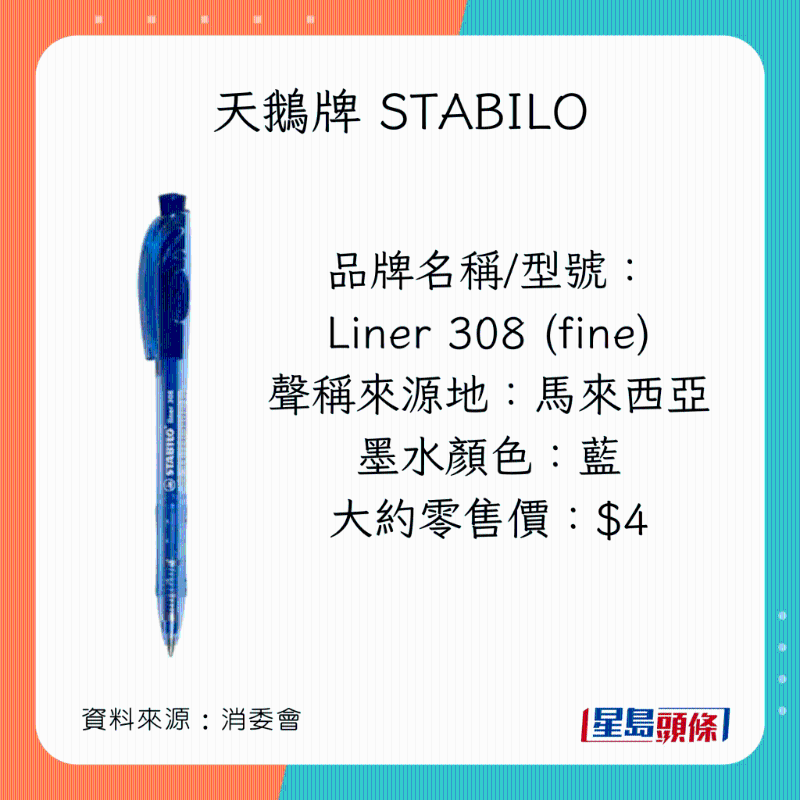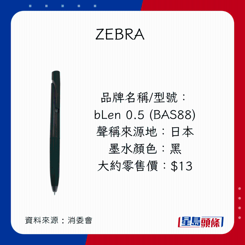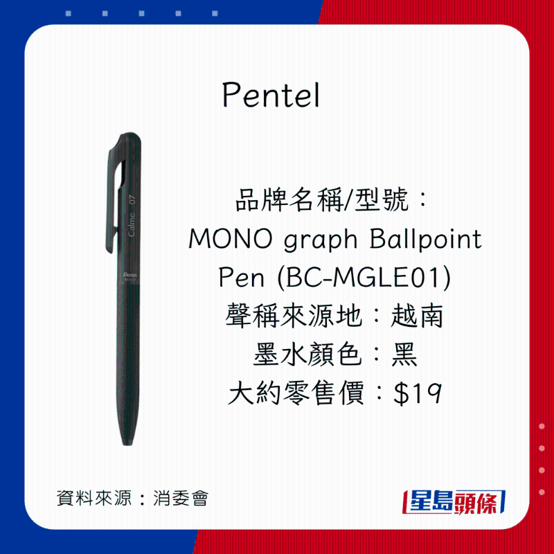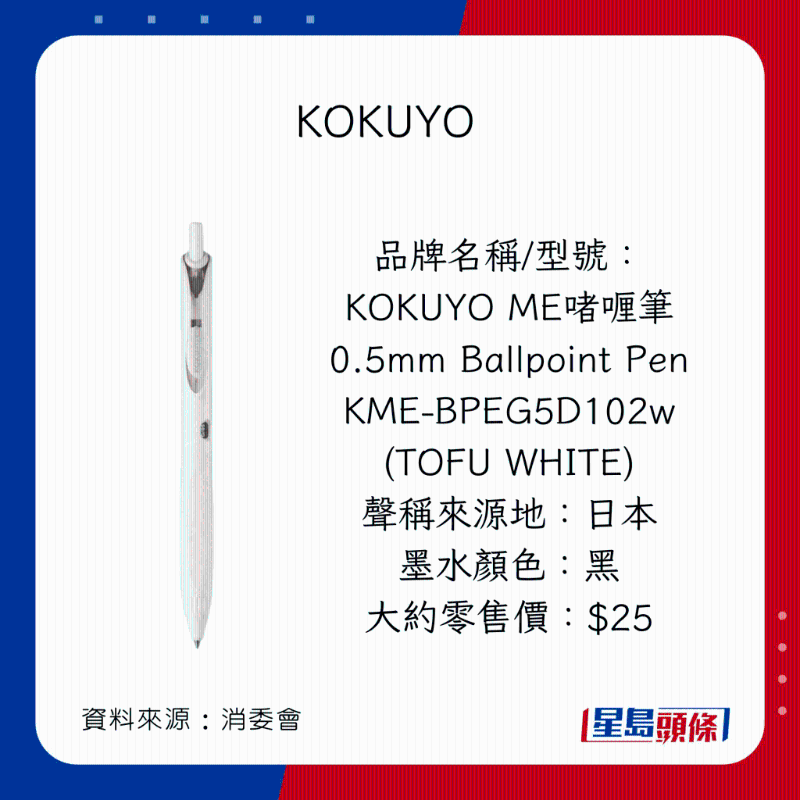 消委會又綜合40款筆的價錢、書寫性能、安全程度、耐力性能試驗進行比較及評分,當中有11款筆同獲4.5分或以上的高分,且不含致敏化學物: