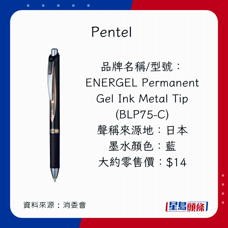 品牌名稱/型號:ENERGEL Permanent Gel Ink Metal Tip (BLP75-C)