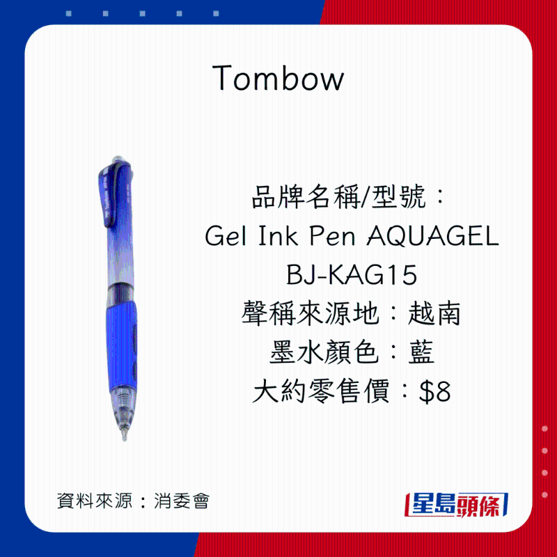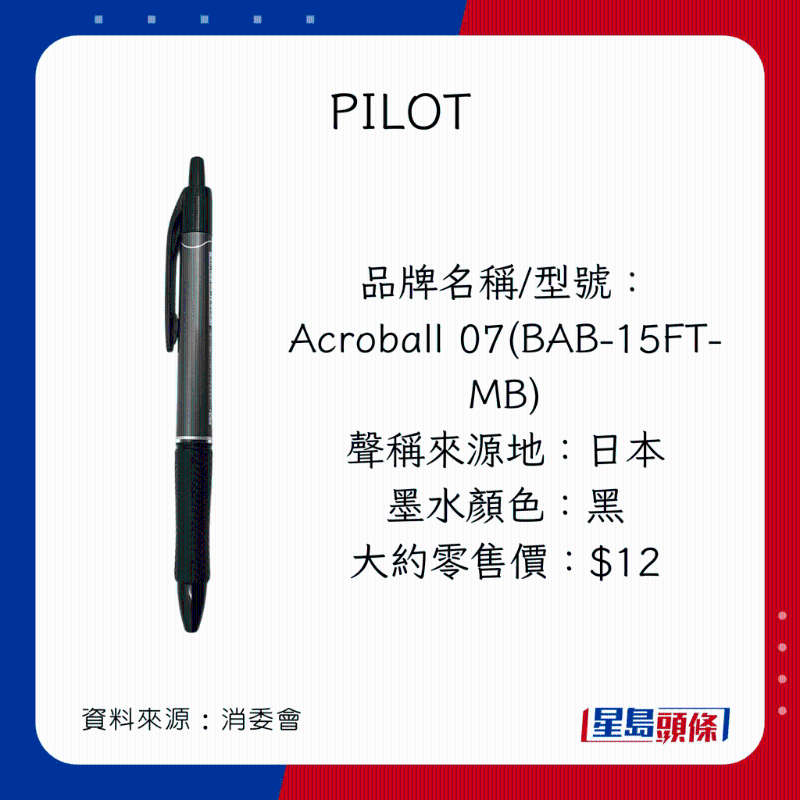 消委會列出6款不含PAHs的原子筆及啫喱筆: