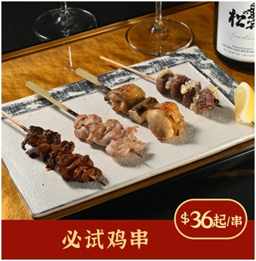 若喜歡吃日本菜中的串燒,首選新餐廳的招牌燒鳥串。大隈啟史表示,每款雞種不同部位的口感、味道各異,無論日本或本地鮮雞都各具特色。經過多次嘗試,他分別選用本地三黃雞、日本山口縣長州雞、佐賀三瀨雞及鹿兒島薩摩赤雞,炮制成雞牡蠣、雞皮、雞腎、雞尾、雞肝、雞心、雞柳及雞頸肉等各種串燒。