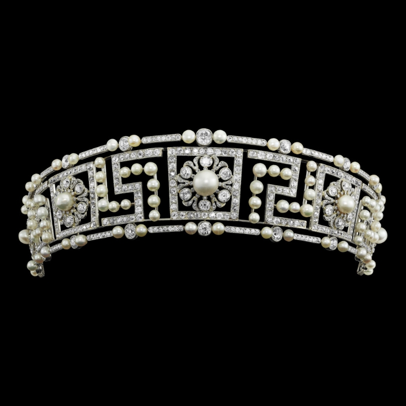 ▲冠冕??ǖ貋啺屠?,1906年。鉑金、鉆石、天然珍珠。演員劉嘉玲惠借。Marian G&eacute;rard, private collection ?Cartier