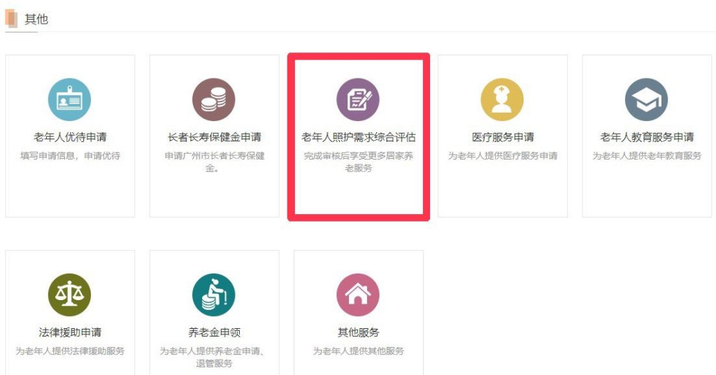 2. 往下拉至“其他”,并點擊“老年人照護需求綜合評估”。