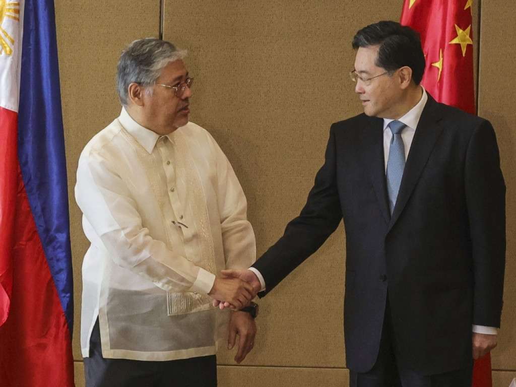 ▲秦剛與菲律賓外長馬納羅會談。美聯社