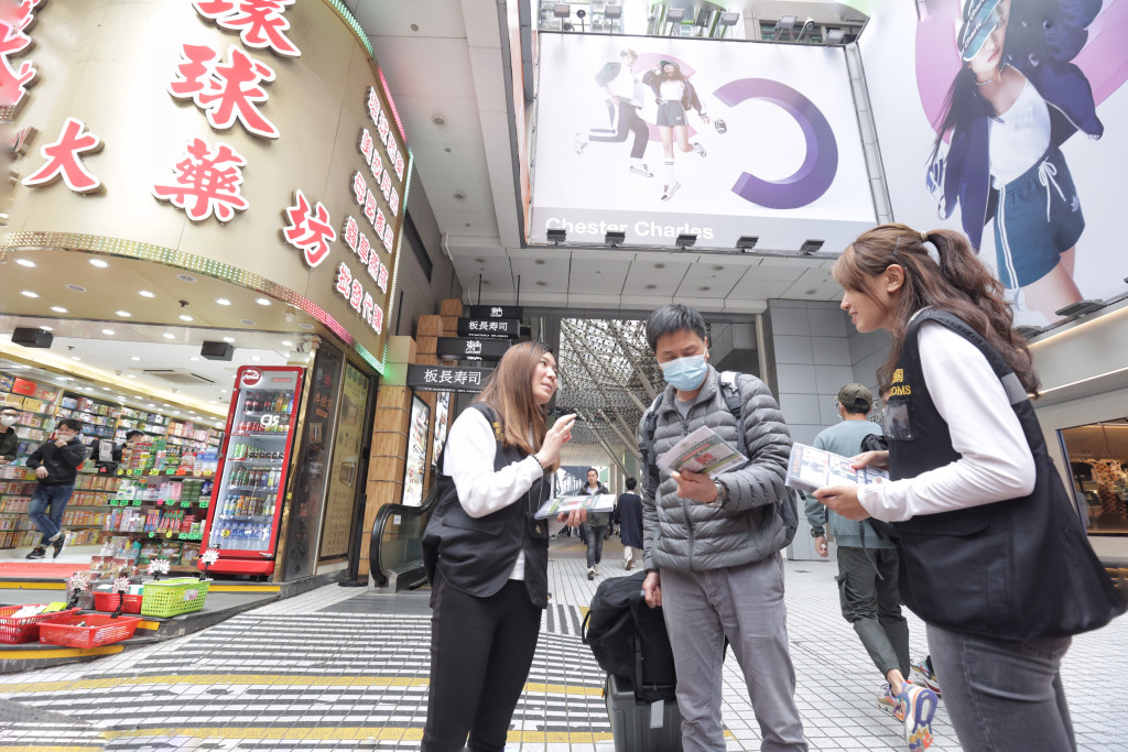 ▲海關人員走訪旅游區及藥店加強宣傳。