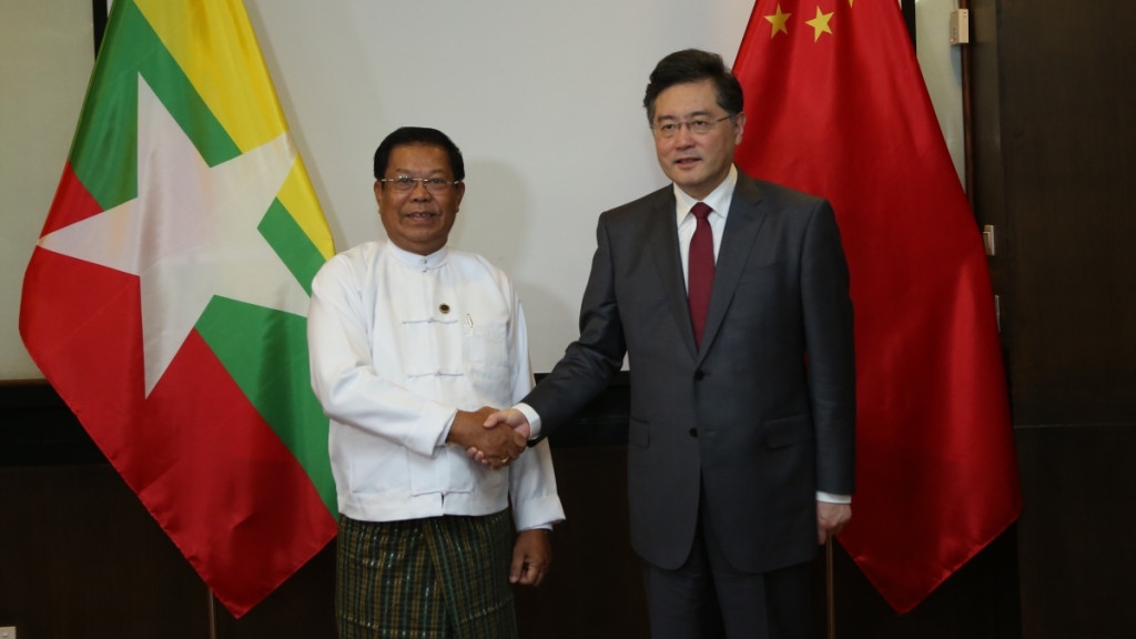 國務委員兼外長秦剛訪問緬甸內比都,與緬甸領導人敏昂萊會面。