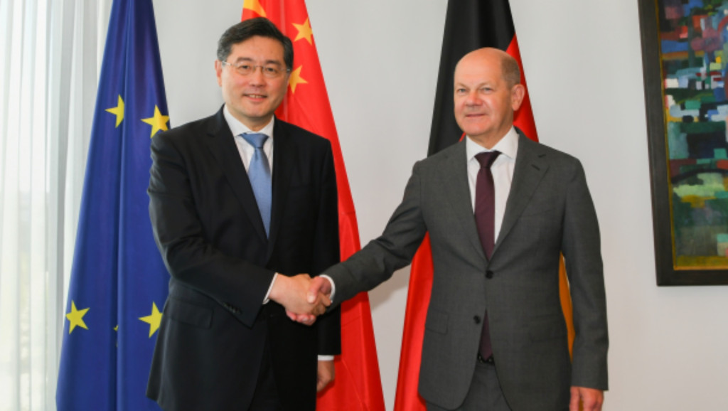 德國總理朔爾茨在柏林會見到訪的國務委員兼外長秦剛。朔爾茨形容是一次重要的磋商,德方愿同中方共同努力,確保取得積極成果。