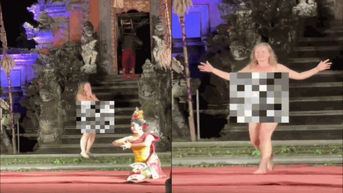 這名來自德國的女游客達雅(Darja Tuschinski)22日在巴厘島的一場舞蹈表演上鬧場。印尼多家媒體取得的影片顯示,當晚約8時,一場表演正進行到一半,達雅突然全裸走上舞臺。其他舞者淡定繼續演出,達雅一邊撥弄頭髮,一邊走上舞臺后方的樓梯,并打開上面的一道門。有人走到門前制止,但被達雅無視,她面向觀眾以主角的氣勢走下樓梯,從舞臺返回觀眾席后,又跪在地上做出疑似祈禱的動作。