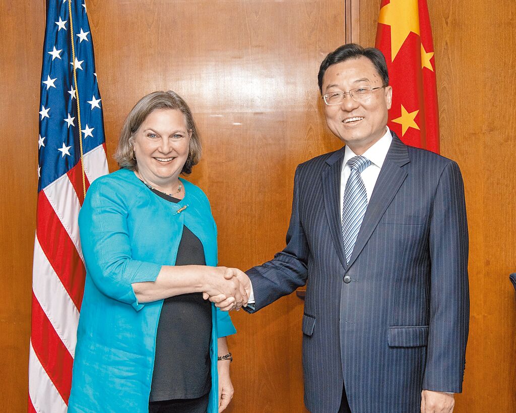 ▲中國新任駐美大使謝鋒(右),美東時間25日在美國首都華盛頓,會見美國國務次卿盧嵐(左)。(摘自盧嵐推特)