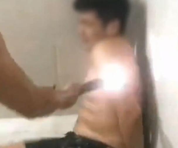 ▲視頻中有被禁錮的人慘遭虐待。 (央視新聞微博截圖)