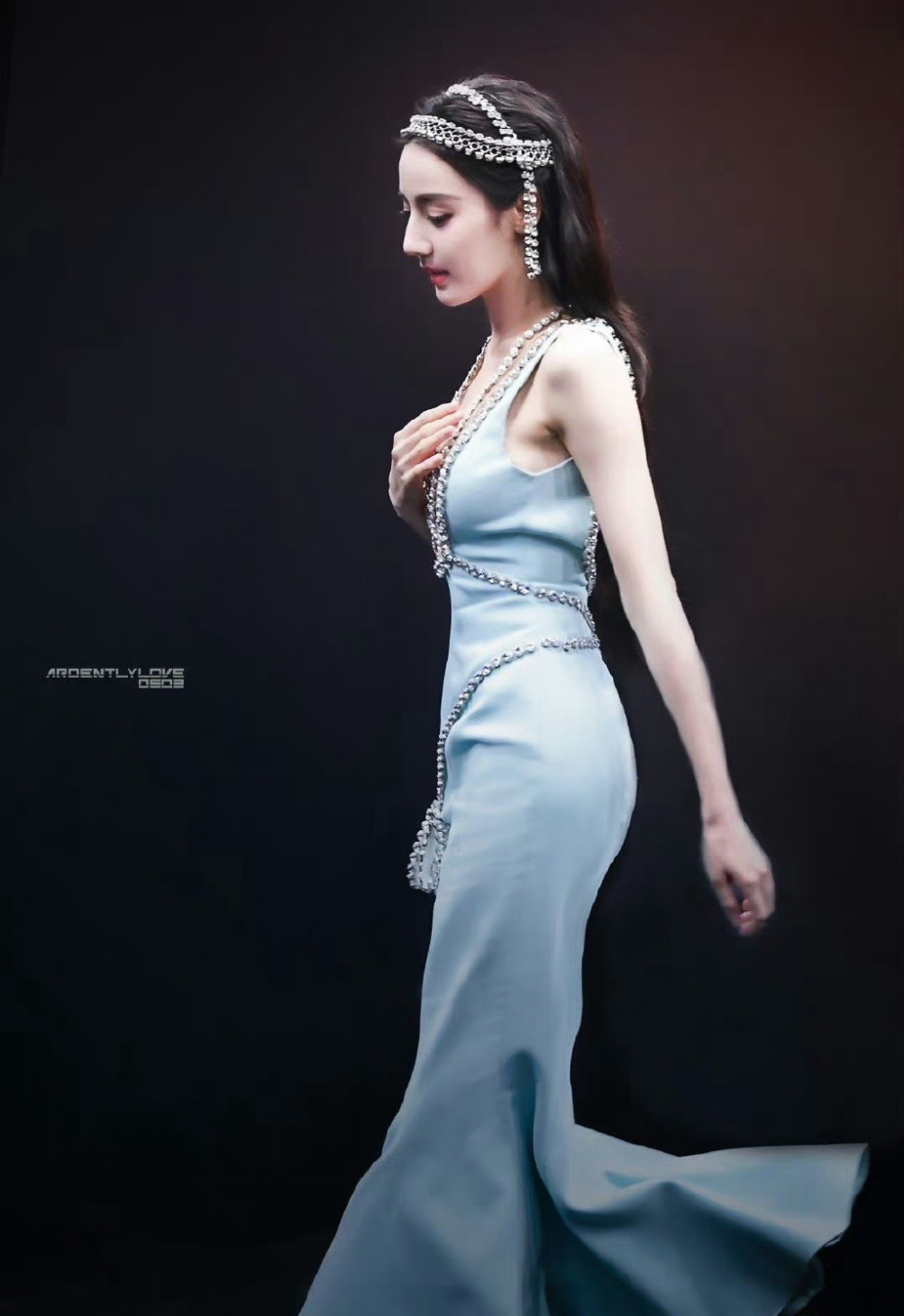 迪麗熱巴日前身穿水藍色水晶鉆飾魚尾裙出席時尚芭莎年度派對,胸口深V設計讓雪白肌膚全都露,放下一頭長發的迪麗熱巴,頭頂鉆石串飾,整體造型華麗又氣質,不過她紅毯走到一半,卻越走越不自在,雙手擺在胸前,還不時看著胸前的薄紗。
