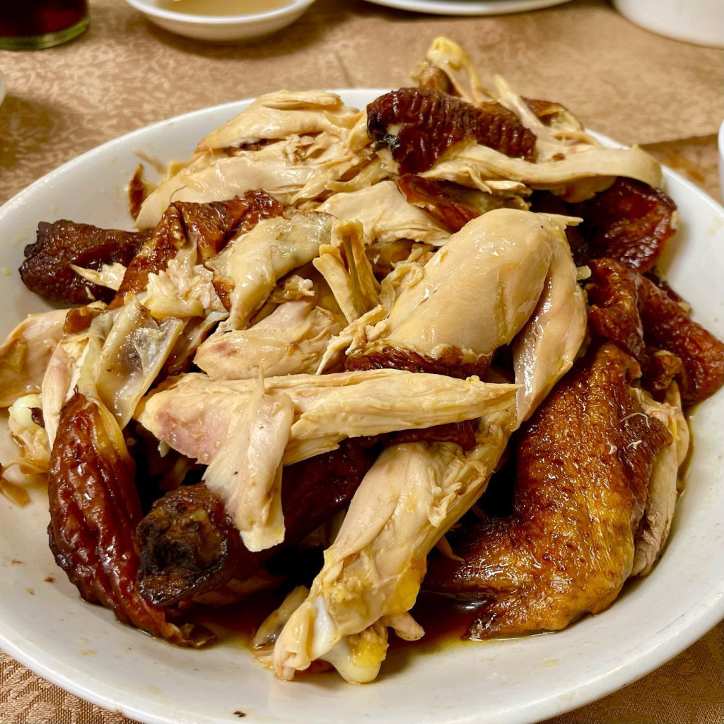 山東燒雞,聽來簡單,其實需要先炸后蒸,再將原只雞起肉,而此菜的靈魂卻是蒜汁,泰豐廔的山東燒雞汁幾十年不變,始終如一。