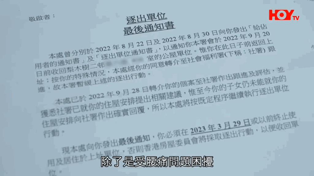 根據陳婆婆收到的遷出通知書時間為去年8月左右,很可能就是在此期間被房屋署發現長期不在香港居住。