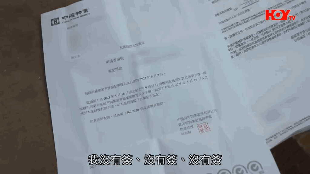 且2023年3月23日收到陳婆婆提交的中轉房屋申請,陳婆婆于4月27日簽收了相關通知及文件。但陳婆婆卻否認此事,聲稱自己并沒有簽收,不愿搬出公屋。