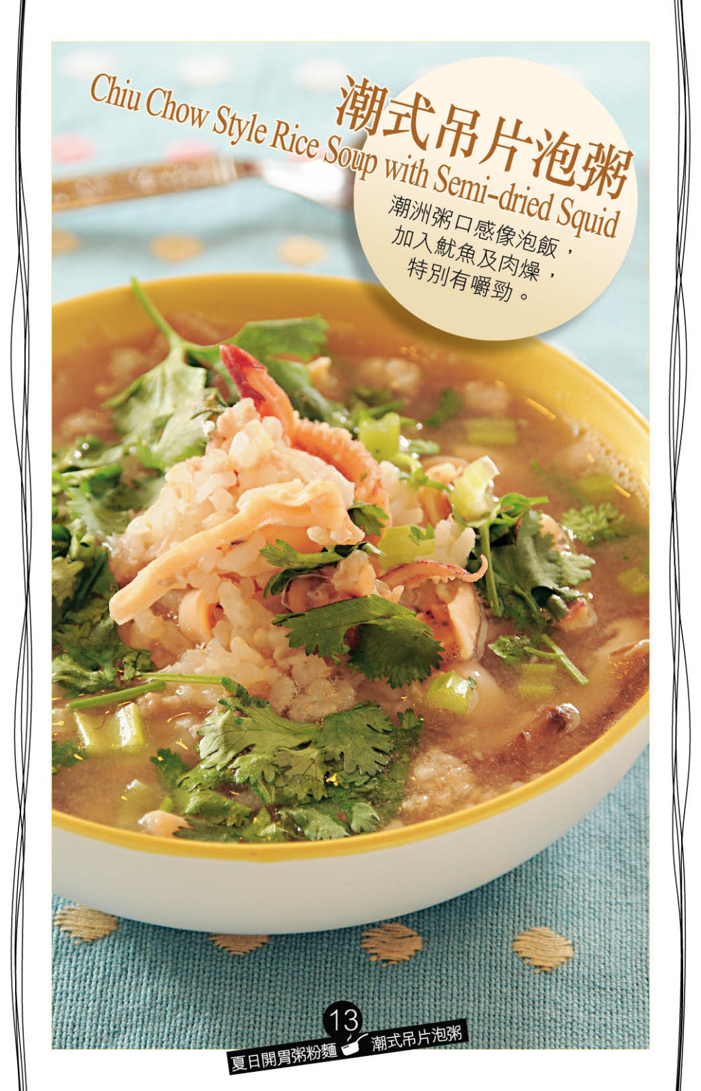 這道“潮式吊片泡粥”加入多款各具香味的材料煮湯。