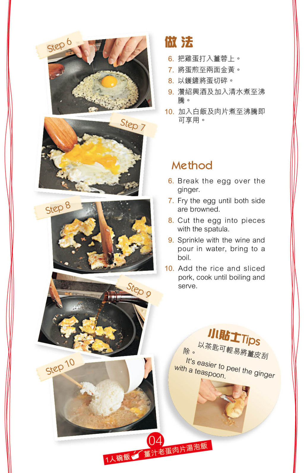 “姜汁老蛋肉片湯泡飯”帶一點客家姜酒蛋風味。