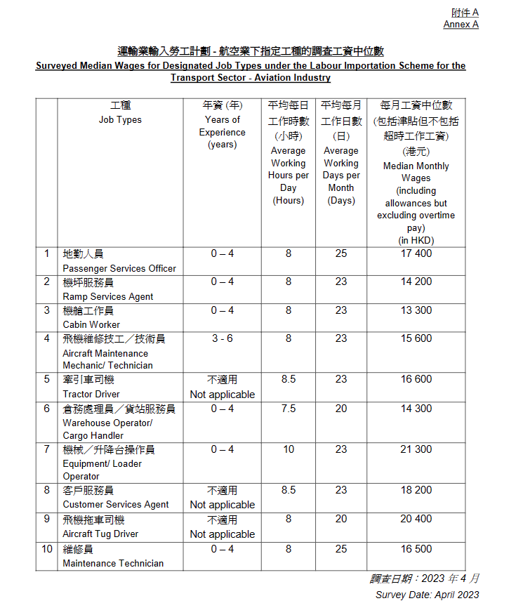 航空業雇主將于7月17至30日期間遞交予機管局,審批程序會由機管局收到申請起計一個月內完成。