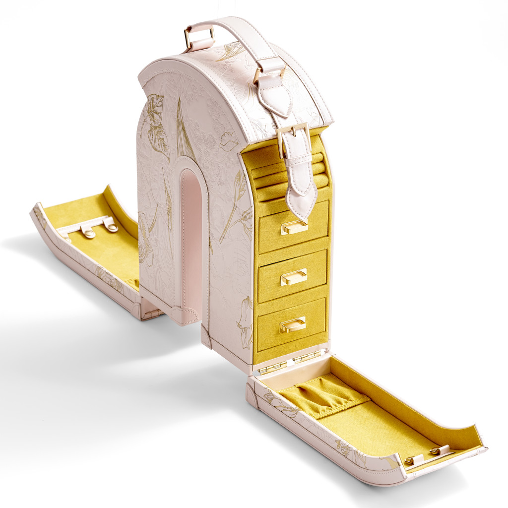 每年都推出吸睛月餅禮盒的Lady M,今年的“Moonglow中秋月餅禮盒”外形設計瑰麗優雅,圓拱型的淡粉色禮盒用毛絨仿麖皮制作,并飾上純素皮革,光亮皮革表面有象征幸運的兔子、節日燈籠、花卉和月亮圖案的金色壓花,配搭高雅亮麗。月餅禮盒可當作首飾盒使用,兩側備有六個小抽屜和內格可用來擺放首飾?!癕oonglow中秋月餅禮盒”內藏六件獨立包裝的月餅,備有三款口味,包括充滿果香的柚子牛奶奶皇月餅、清新的班蘭抹茶奶皇月餅,以及芳香的荔枝玫瑰奶皇月餅。每個月餅禮盒更附有特制紙袋及心意卡,讓你給親友寫上祝福。