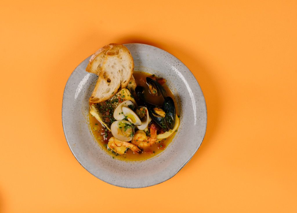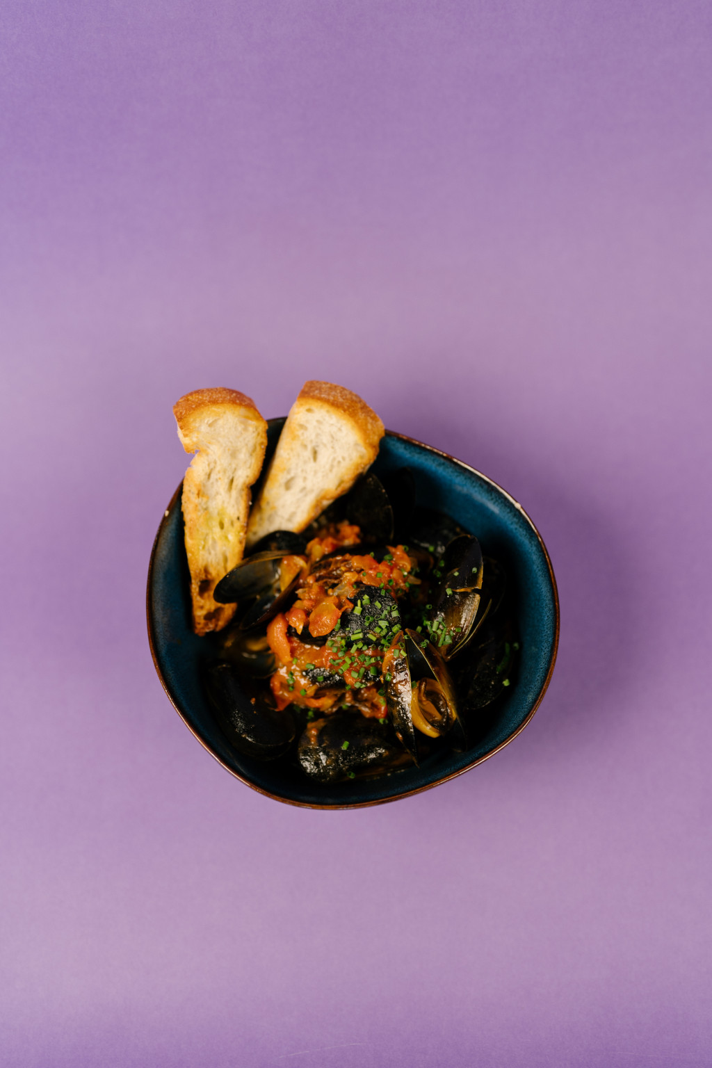 全新新鮮青口配茴香酒汁($128)青口加入茴香酒同煮,青口汁帶有草本香氣,鮮味十足。