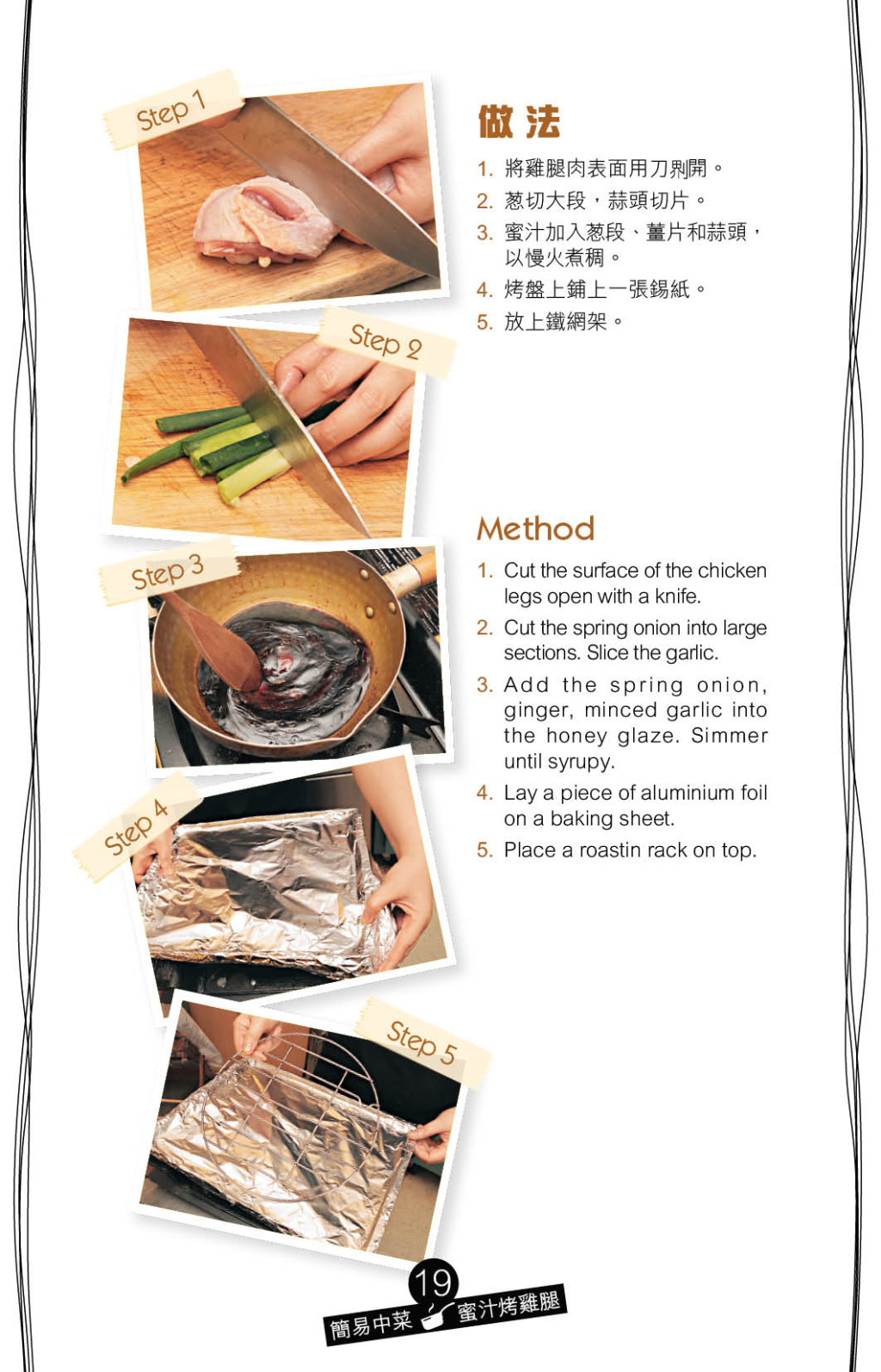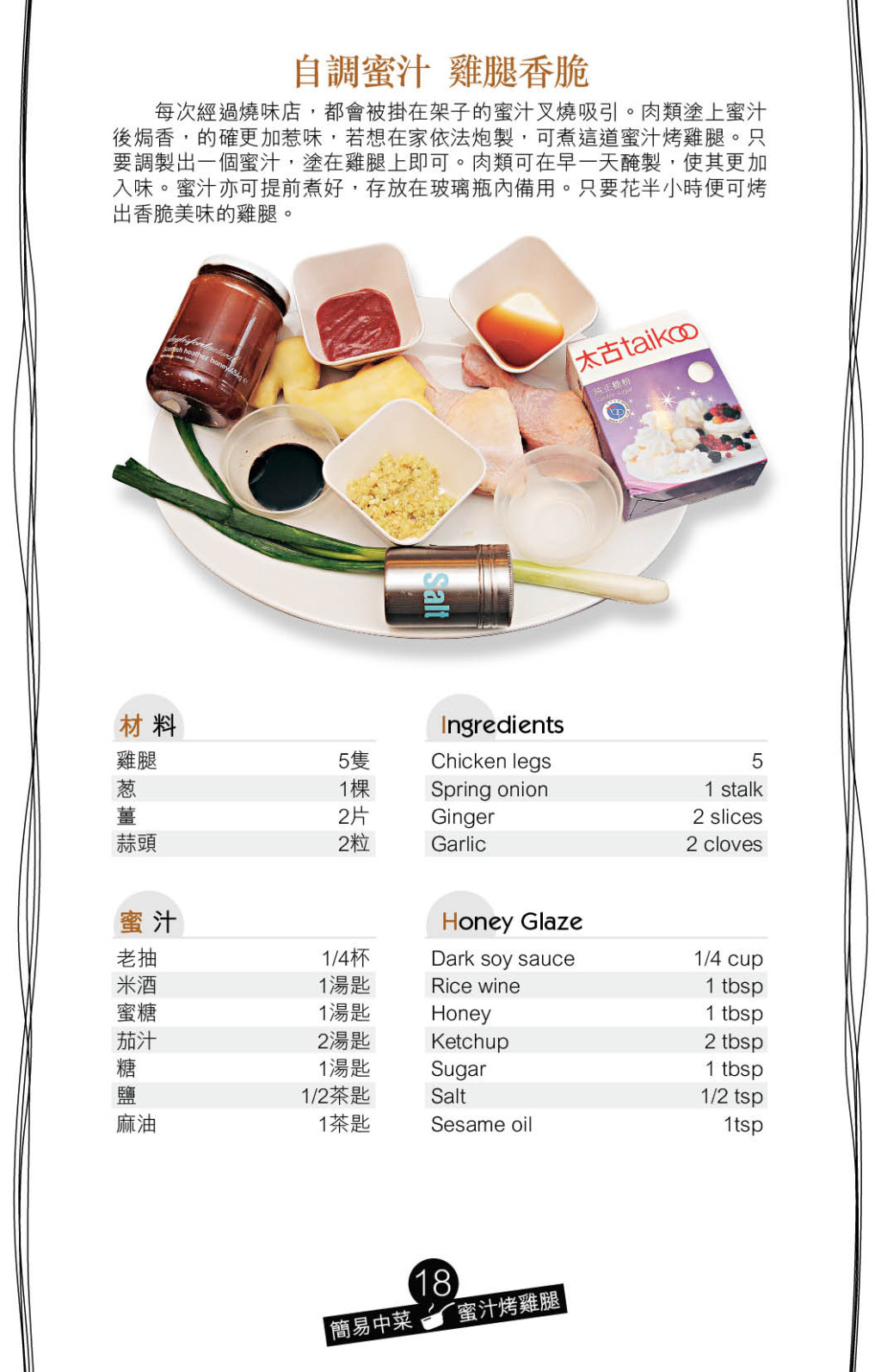 ▲秘訣是涂上以老抽、米酒、蜜糖、茄汁、糖、鹽和麻油調制的蜜汁,再放入焗爐烤熟即可。