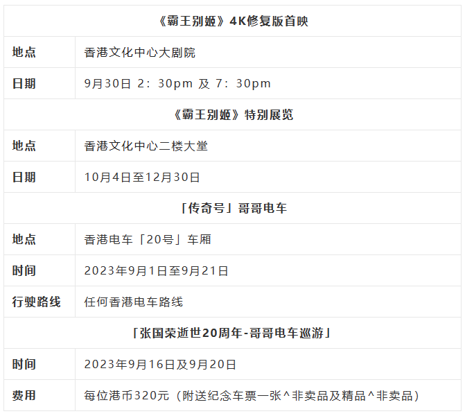 主辦單位將于9月份舉辦限定兩天的“張國榮逝世20周年-哥哥電車巡游”,由屈地街出發,游走銅鑼灣至跑馬地,延續“兜風心情”?;顒用~有限,額滿即止。