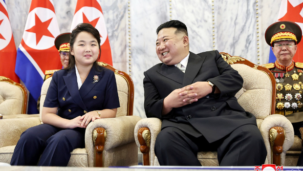 金正恩8日攜愛女金主愛出席建國75周年閱兵式,金主愛與父親一同坐在主席團特別席上,引起韓國相關單位及專家注意,認為接班勢頭更明顯。朝中社 ? ?