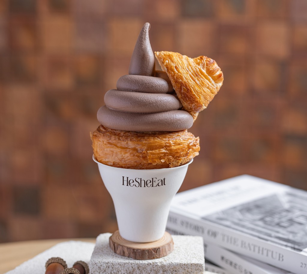 人氣輕食甜品店HeSheEat,于旺角THE FOREST開設新地鋪,特別推出限定甜品“特濃5.0牛乳軟雪糕系列”,當中的“牛角包 x 特濃5.0牛乳軟雪糕”富搞鬼新意,在牛角包內藏“便便”造型的軟雪糕,是打卡之選。綿滑的牛乳軟雪糕奶味香濃,配香醇比利時朱古力軟雪糕,加上金黃酥脆的牛角包,帶來多重味覺享受。