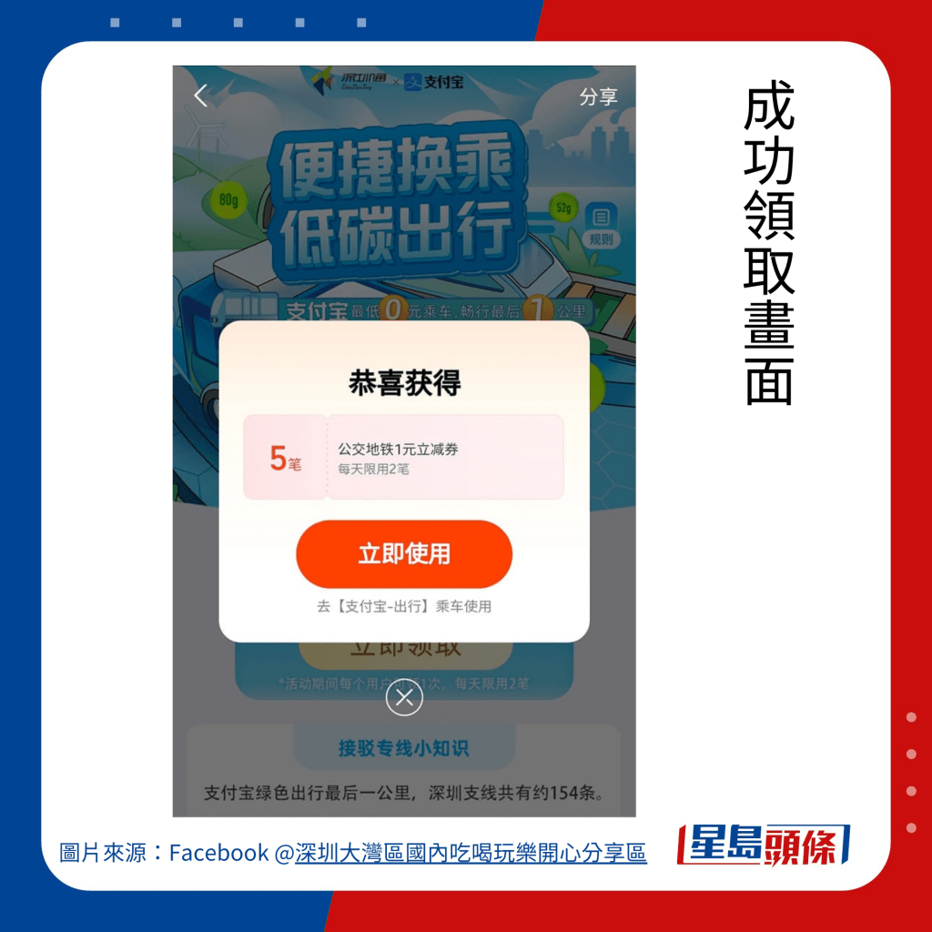 深圳消費券|4. 深圳支付寶乘車優惠券