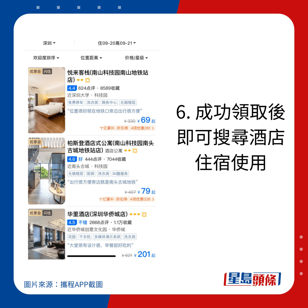 6. 成功領取后,即可搜尋酒店住宿使用。