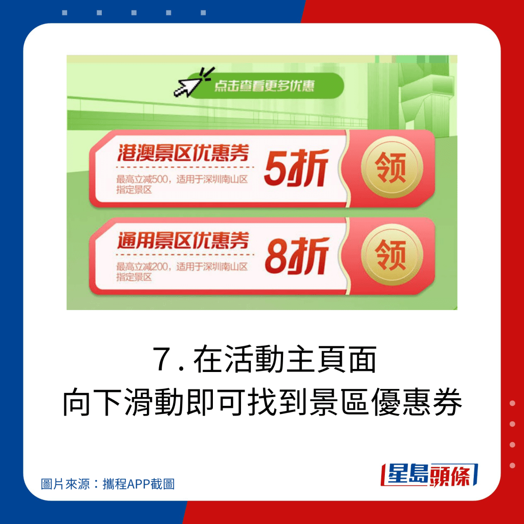 7. 在活動主頁面 向下滑動即可找到景區優惠券
