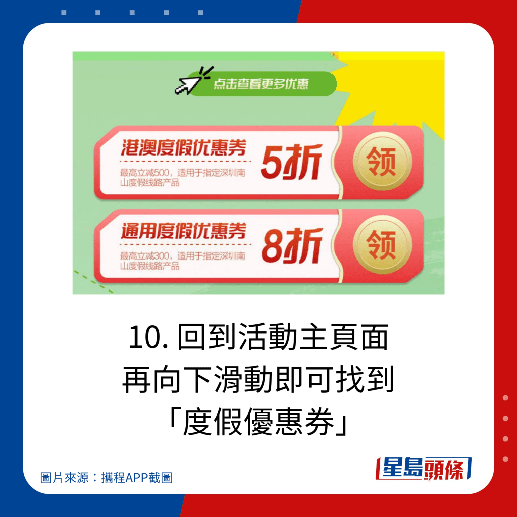 10. 回到活動主頁面 再向下滑動即可找到 “度假優惠券”