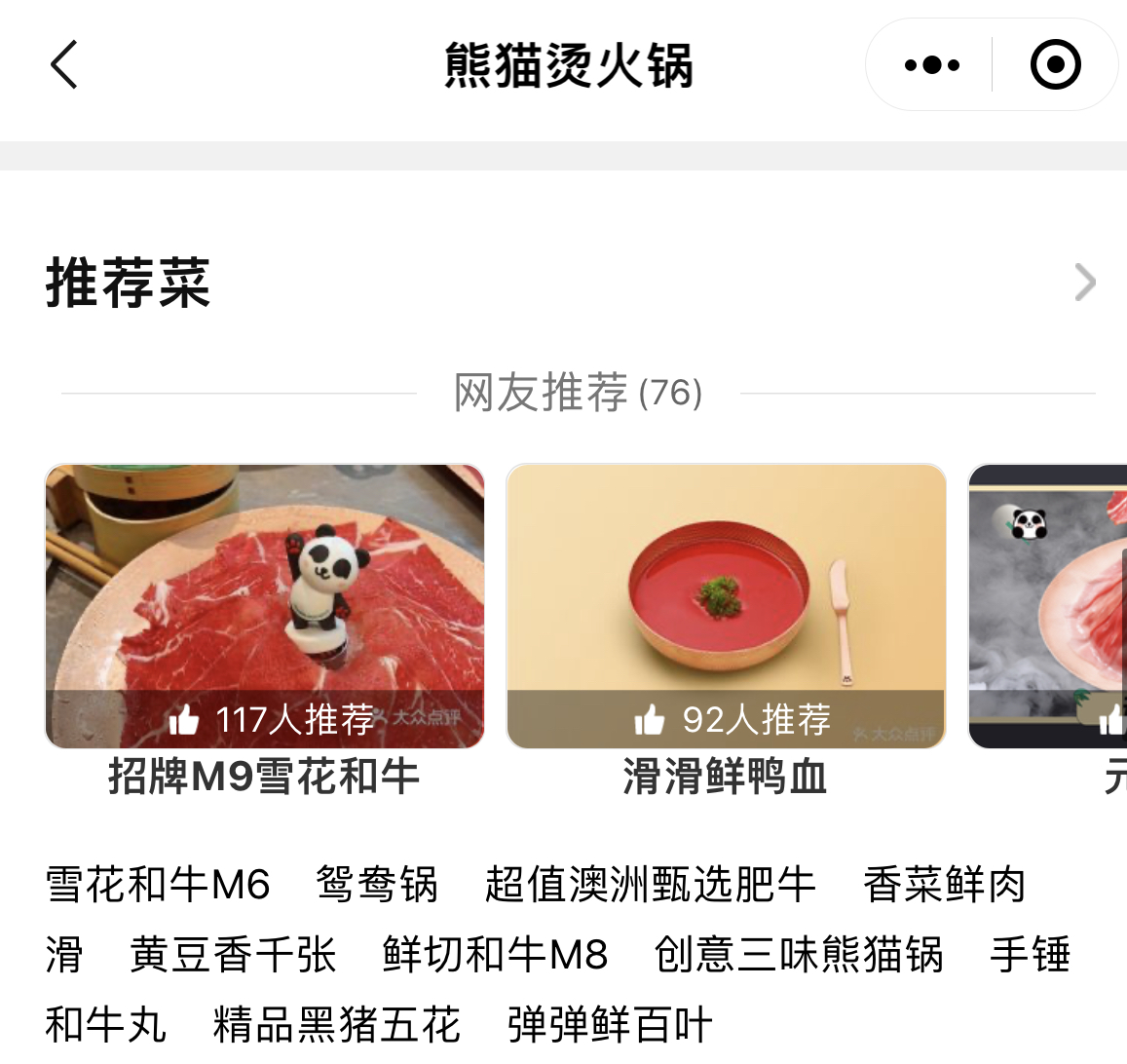 ▲點擊“推薦菜”欄目,查看店鋪內的菜品。