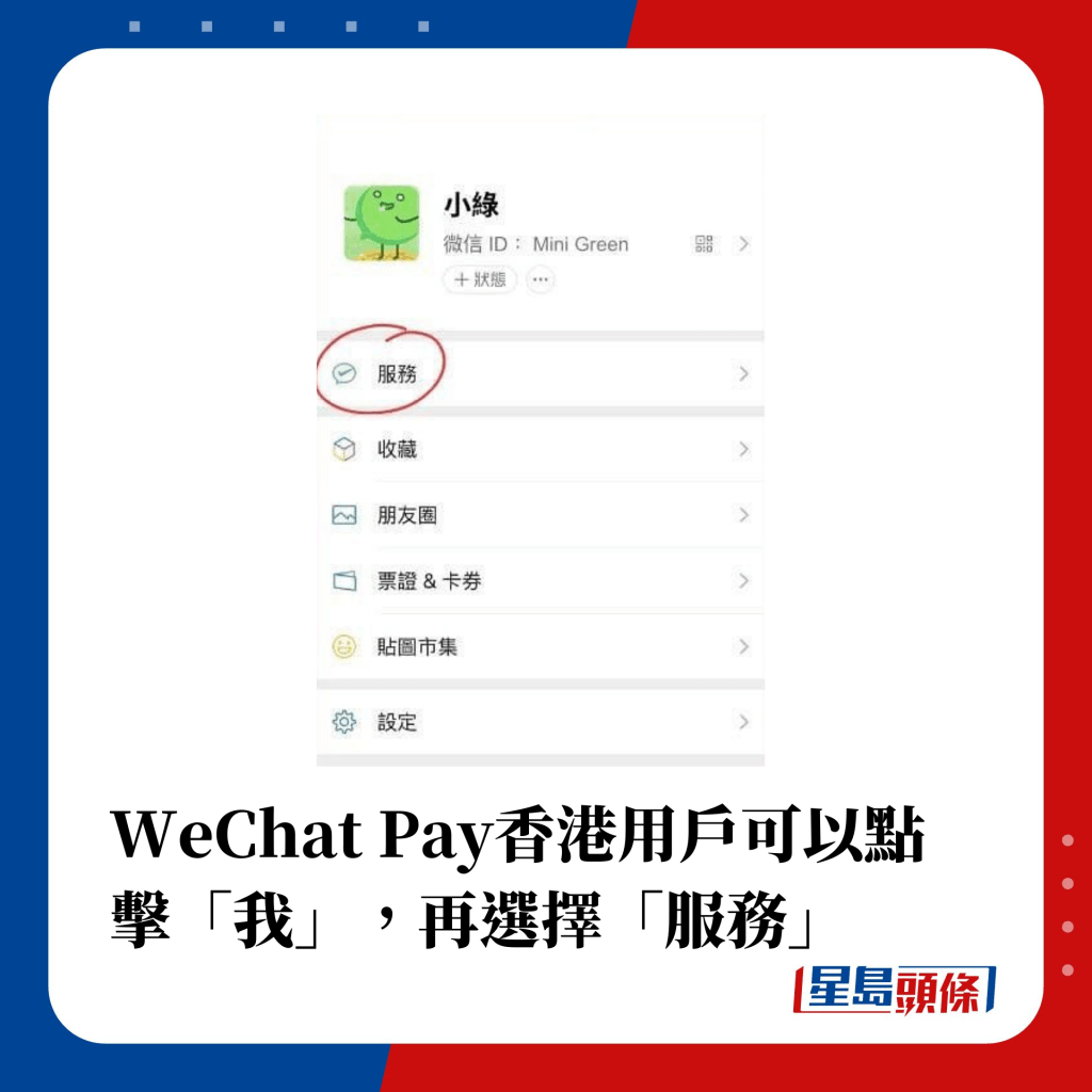 WeChat Pay香港用戶可以點擊“我”,再選擇“服務”