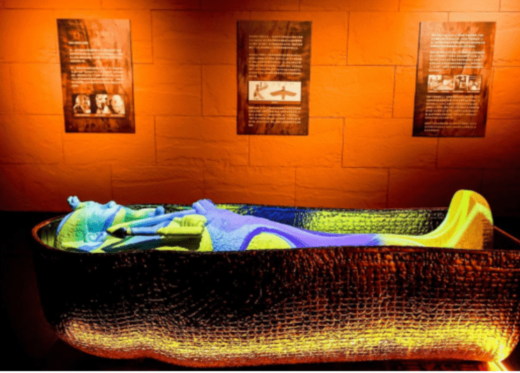 ▲1:1復刻了古埃及新王國時期的等十人王朝法老圖坦卡蒙的金棺,還原了陵墓場景