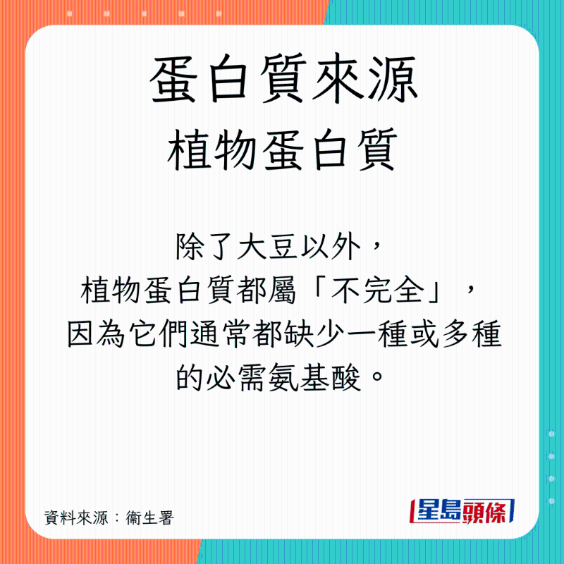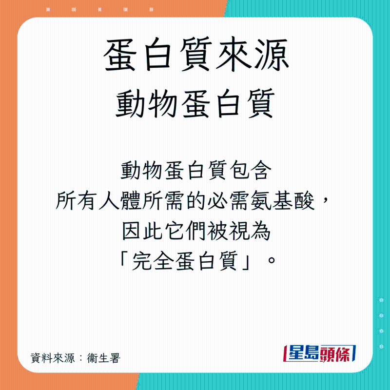 根據衛生署資料,蛋白質分為動物及植物2大來源: