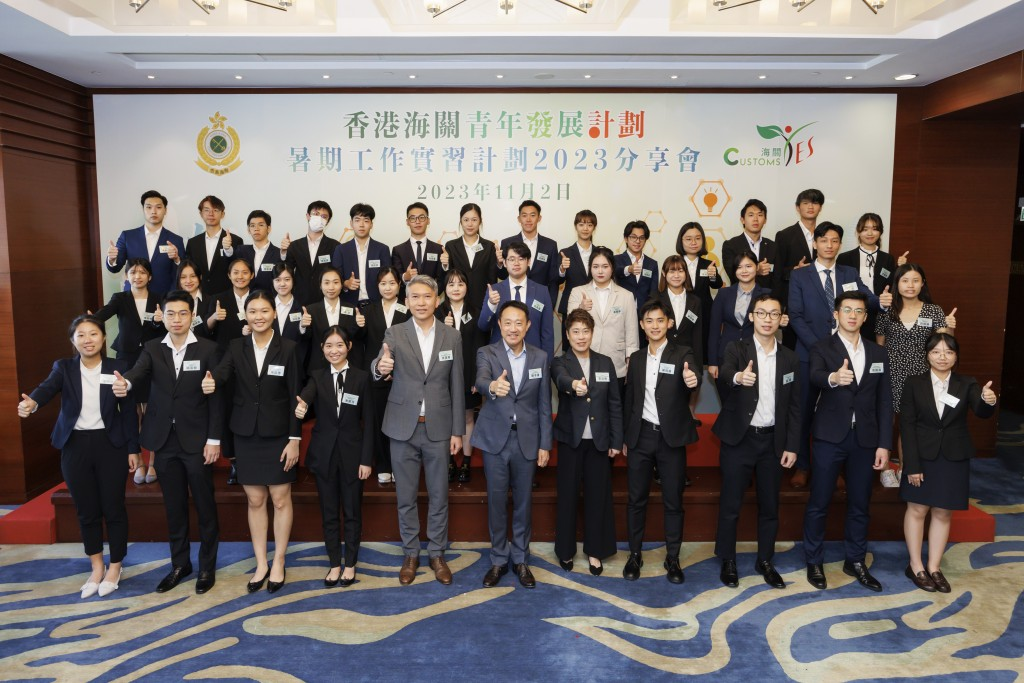 香港海關2日舉行香港海關青年發展計劃(Customs YES)暑期工作實習計劃2023證書頒發典禮暨分享會,各參與計劃的支持機構代表、海關不同科系的代表和實習生都有出席。