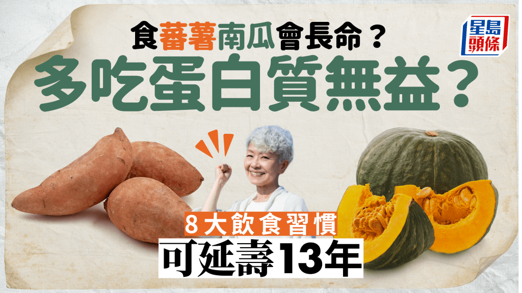 怎樣的飲食習慣才能令人長壽?有美國研究指出,如果可透過飲食攝取適當的營養,避開對身體有害的食物,就能夠幫助延緩身體老化及預防疾病,從而延長壽命。研究人員總結出8大有益健康的飲食習慣,包括吃番薯、南瓜等,最多可延長壽命達13年。