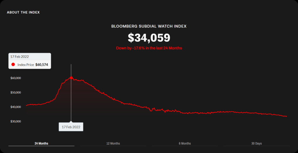 作為世界上著名的名表品牌,勞力士(Rolex)向來都是人們投資保值之選,惟其二手價格近年一沉不起。最新彭博Subdial名表指數(Bloomberg Subdial Watch Index)顯示,勞力士已跌至兩年新低。