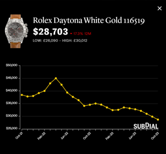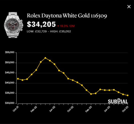 Daytona White Gold 12個月慘跌19.3%