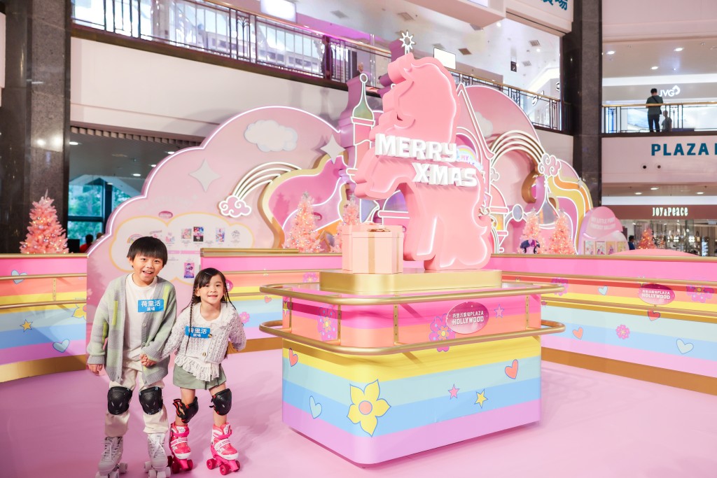 現場更特設全港首個“My Little Pony冬日滾軸溜冰場”,糅合彩虹色主調與Y2K主流風格,還有三米高的圣誕粉紅小馬燈牌,不但打卡一流,大人與小朋友更可入場試玩,周末及特定日子亦設有由Rollalar舉辦的滾軸溜冰體驗班,屆時有專人教授滾軸溜冰的技巧。