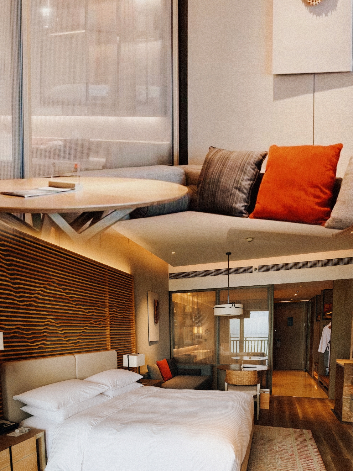 深圳佳兆業萬豪酒店就在“中國最美八大海灣”之一的金沙灣附近,在房間內就可欣賞到海天一色的美景,海水真的要比其他沙灘清澈干凈!天氣好的話,在戶外拍照真的很出片,能夠拍出東南亞度假風!晚上夜景也很漂亮,可以在大堂吧點杯喝的,19點以后有現場音樂可以聽,然后坐那聽聽音樂嘮嘮嗑!